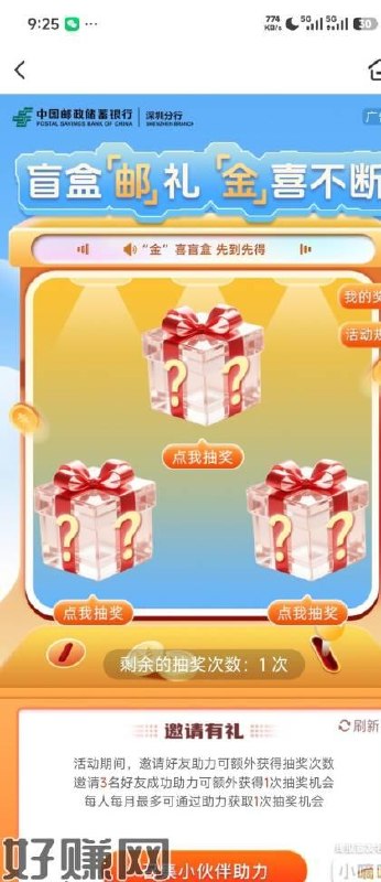 【活动介绍】邮政银行抽立减金【活动时间】1/日次,4次/月,6.30截止【活动规则】直接抽奖【参与方式】邮政银行APP搜索本地生活地区深圳【测试截图】如图